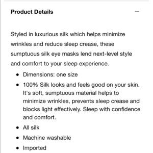 Silken Slumber 100% Silk Sleep Eye Mask- BRAND NEW black