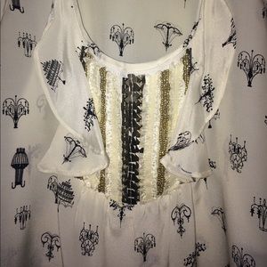 Silkish tank. Cute chandelier detail.
