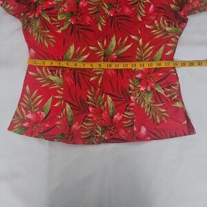 Silkland 100% Pure Silk Red Floral Print Button Front 3/4 Sleeve Blouse Women's Size 10