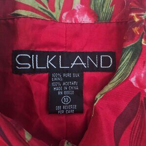 Silkland 100% Pure Silk Red Floral Print Button Front 3/4 Sleeve Blouse Size 10
