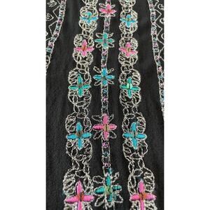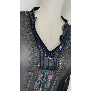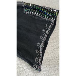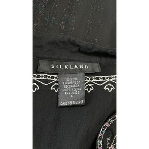 Silkland 100% Silk Black L Embroidered Beaded Sequined Blouse Sheer Rainbow