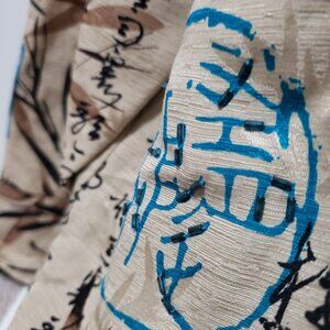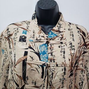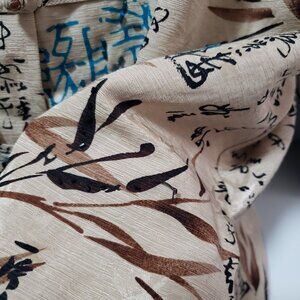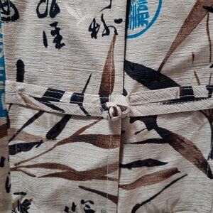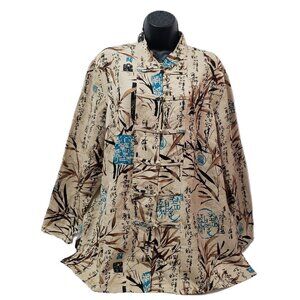 Silkland Brown Asian Style Silk Jacket Topper Size 2X Plus Beaded Characters