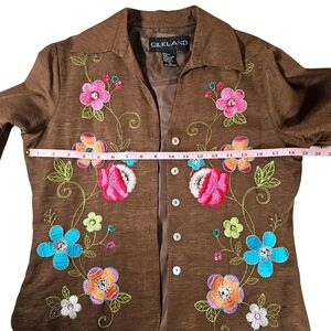 Silkland Embroidered Silk Blazer, Size Small, Brown with Floral Design