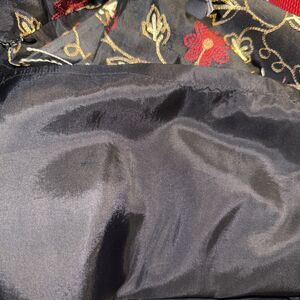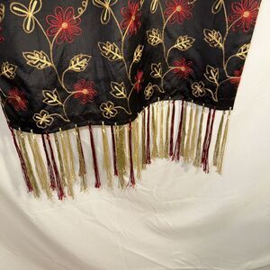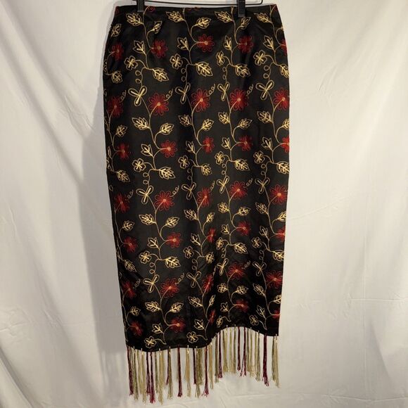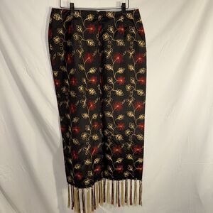 Silkland Fringed Maxi black Floral Embroidered skirt Brown/Gold/Red Sz 10