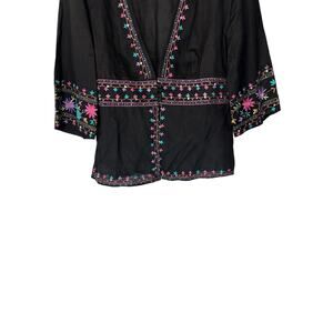 Silkland Linen Embroidered Sequin Bohemian Boho Gypsy Jacket Blazer Size Large
