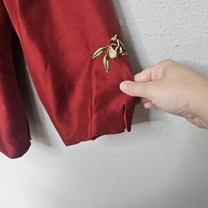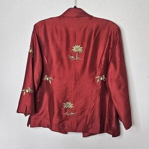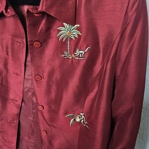 Silkland Maroon Red Silk Blazer Womens 10 Embroidered Tropical Monkey
