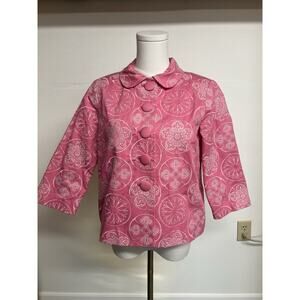 Silkland Petite Jacket Womens Sz PS Pink Covered Buttons Cropped Barbiecore Mod
