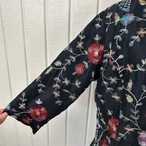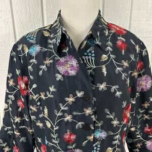Silkland Petite Women Embroidered Top Blouse Artsy Boho Silk Black Size 14P