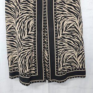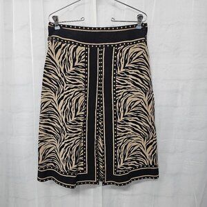 Silkland Tan Black Animal Print Pleated A-Line Skirt Tribal Safari Office 6