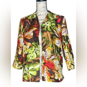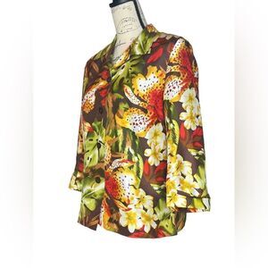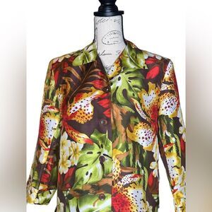 Silkland Vintage Floral Light Jacket / Tropical Button front 100% silk NWT size 6