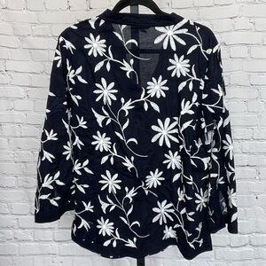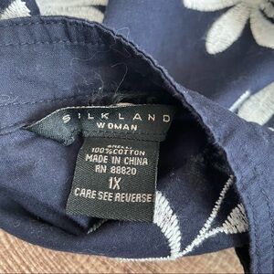 Silkland Woman Navy and White Embroidered Floral Blouse Size 1X