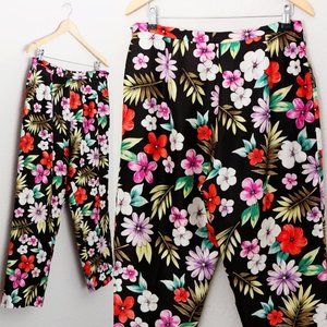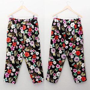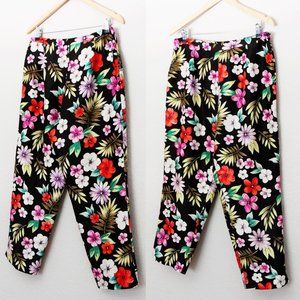 Silkland Women's 12 100% Pure Silk Tropical Vibrant Colorful Floral Pant Black