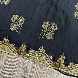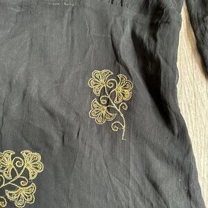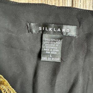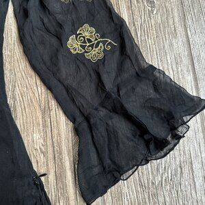Silkland Womens Babydoll Blouse Silk Black Sheer Flutter Gold Empire waist Witch