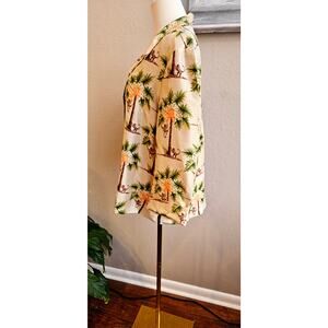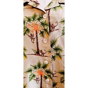 Silkland Women's Pure Silk Monkey Palm Print Button Front Top Tropical