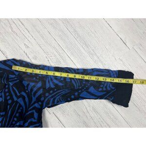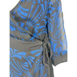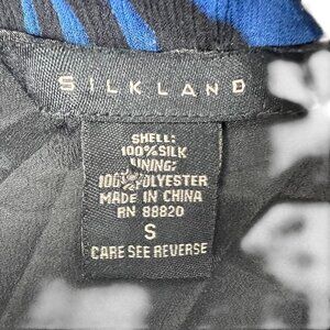 Silkland Womens Size Small Black & Blue Wrap Blouse 100% Silk