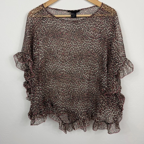 Silkland sheer leopard print. Brown and pink with gold accents