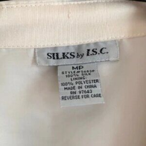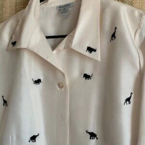 Silks By LSC White Blouse with Black Animal Print Size MP 100% Silk Women Shirt