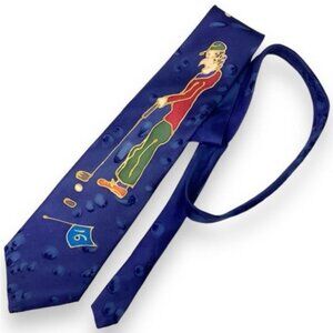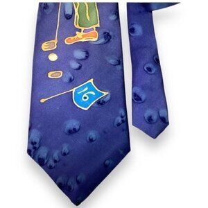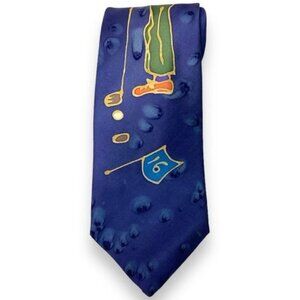 Silkvine's men's novelty golfing necktie is a unique, hand-painted design made in Ireland. Ideal for business casual wear, it adds a touch of personality to your attire. Crafted from silk, it is blue in color and one size fits all.