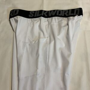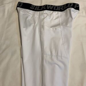 Silk world size extra large men's white compression pants/leggings/tights. Left & right side pockets. NWT & Smoke free/Pet free home. See photos for complete description/details.