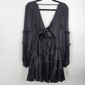 Soft and flirty black ruffle dress. Super silky and flowy. Perfect dress to shine like the pitch black night.