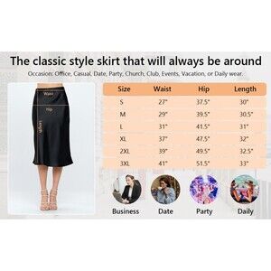 * Description: If you are looking for a nice satin-style skirt, this one is wonderful. The material is thicker & looks luxurious.
