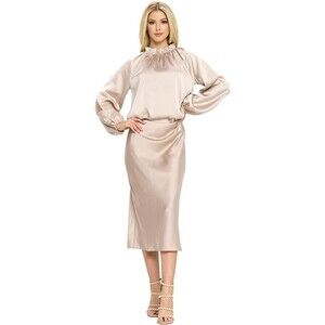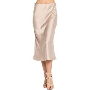 Silky Casual Elastic Satin Midi Skirt Sz S