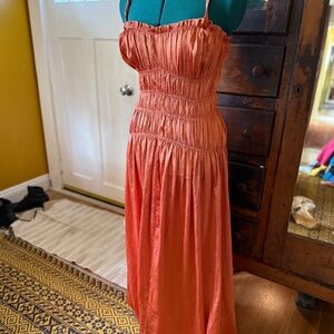 Silky Drop Waist ASOS Gown - Midi Maxi Dress with Smocking Size Small, 0-2