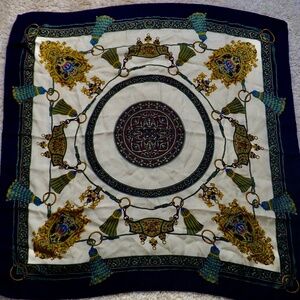 Silky Euro Coat of Arms Black & Gold with Tassel Print Square 33" Hand Rolled