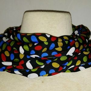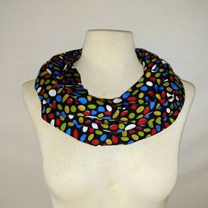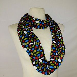 Silky Satiny Smooth Red Blue Tan Green & White Jellybean Pattern Rayon Infinity Scarf.