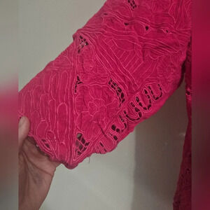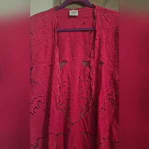 Silky Line Made in Indonesia lace open front kimono top. Pink. OS