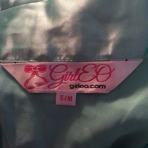 Worn 1x. Mint green. 98% Polyester/2% Spandex. Machine wash. No pocket, 3\4 sleeve, Inside ties, fabric belt. See listing for size 3x/4x
