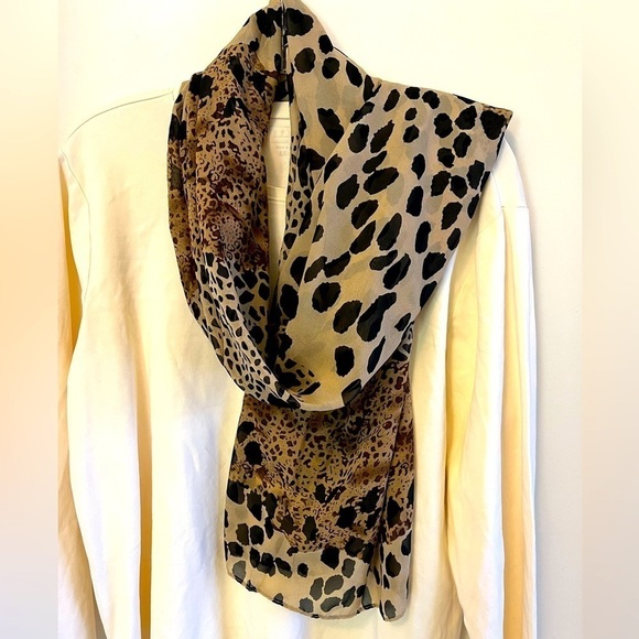 Silky Scarf Animal Block Print Tan Brown Print 62” Long x 28” wide