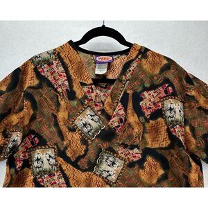 Silky Scrubs Shirt Mens Size M Southwestern Zebra Print Medical Uniform Brown