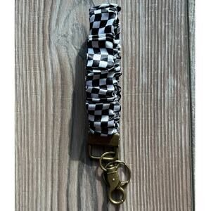Silky Scrunchie Wristlet Keychain Bag Purse Charm Black White Check Checkered