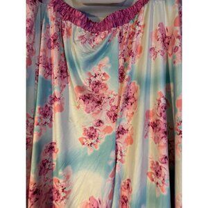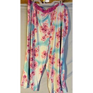 Silky Sleep Lounge Pants Womens Plus Size 3X Pajamas Blue Pink Floral Pretty
