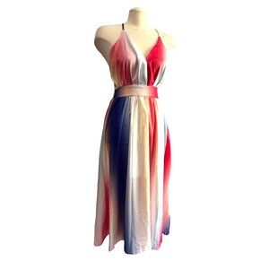 Silky Tie Die Color Splash Open Back Strappy Maxi Dress Sz Medium Womens Flowy L