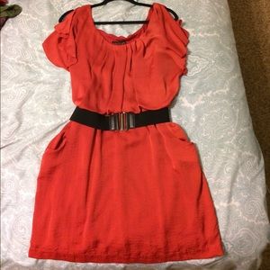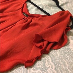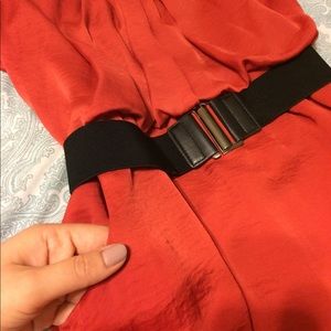 XL Belted Dress - Burnt Orange slight shimmer to fabric as it is silky material. Very comfortable! Probably fits size 10-14