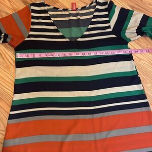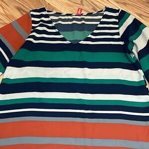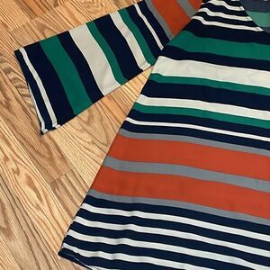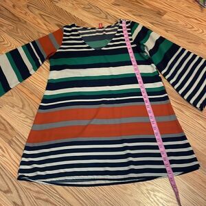 Silky Fall Dress, Yahada, Wide Stripes, medium, tunic, 3/4 bell sleeves