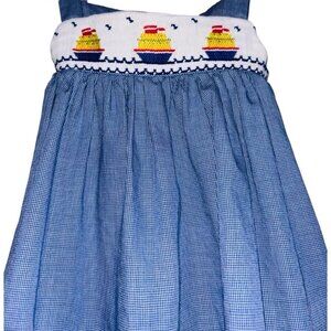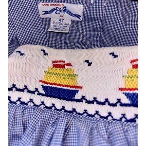 Silly Goose Girls Navy Plaid Hand Smocked Sail Boats Sundress Sz 4T Preppy