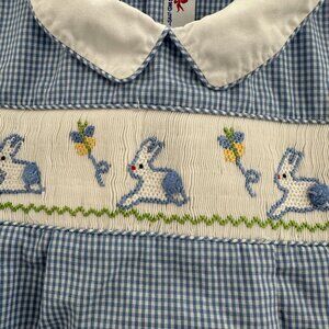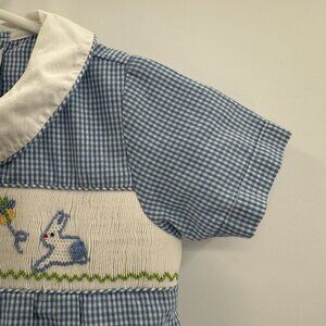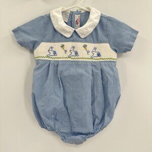Silly Goose Hand Smocked Easter Bunny Bubble Romper 12 Months Gingham Baby Boy
