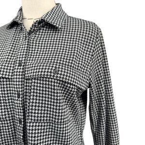 Silly People Black White Houndstooth Button Up Shirt Shacket Womens Small