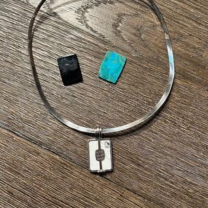 Silpada .925 Silver interchangeable pendant. Black Turquoise & white discs.