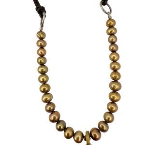 Silpada 925 Sterling Silver Gold Pearl Abalone Pendant Necklace 18" Leather