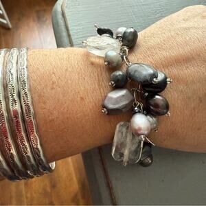 Silpada 925 Sterling Silver Pearl & Beads toggle Bracelet