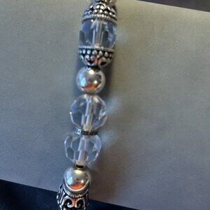 Retired Silpada Sterling Silver & Glass Bead Stretch Bracelet