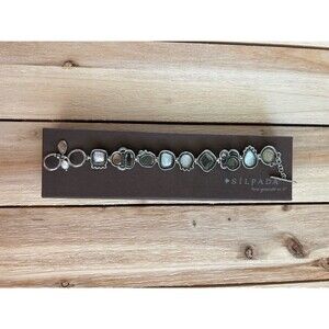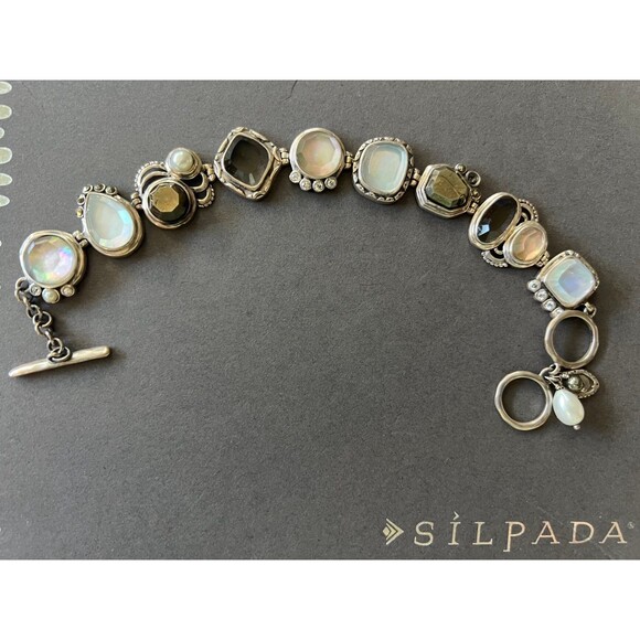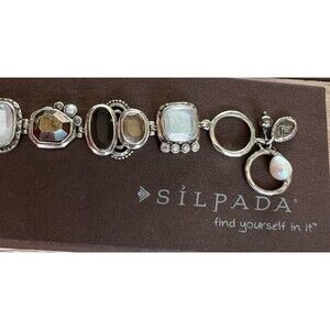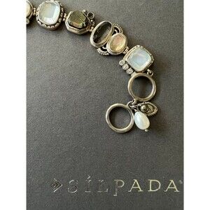 Silpada Retired B2790 Exemplar Bracelet Made of Cubic Zirconia, Rock Crystal, Mother-of-Pearl, Lip Shell, Pearl, Pyrite, Marcasite and Sterling Silver.