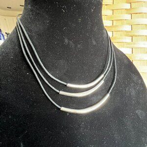 Silpada Black Leather Sterling Silver Tubes Necklace Multi Strand
