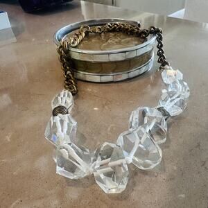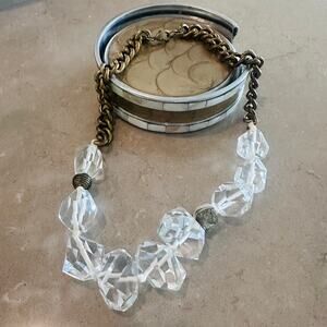 Silpada Crystal Bead Brass Chain Statement Necklace with Pyrite