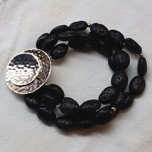 Silpada Hammered 925 Sterling & Lava Stone Bracelet B1511