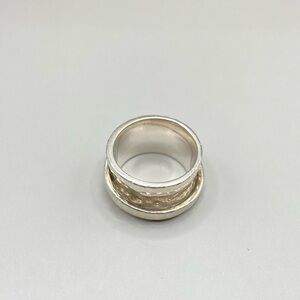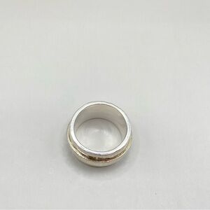 Silpada sterling silver and 14K gold plated hammered spinner ring, R1476. Note, the spinner used to be gold plated, but the plating has worn off. Otherwise the ring is in nice shape with no major scratches or dings. Fits more snug due to the width of the band, I usually suggest ordering 1/2 to 1 size larger for wider bands.